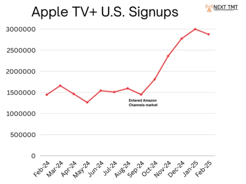 US Apple TV+ signups more than doubled from 1.44M in September, the month before Amazon’s app marketplace started selling the platform, to nearly 3M in January. (Stream TV Insider)