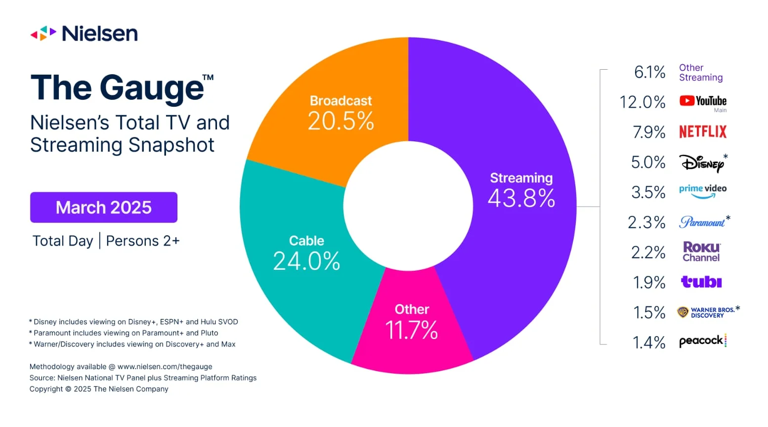 In March, the NCAA tournament helped drive an increase for traditional cable, the Oscars stood out for broadcast, and in a competitive month of high-profile streaming releases, the top programs in March were represented by seven different streaming platforms. (Nielsen)