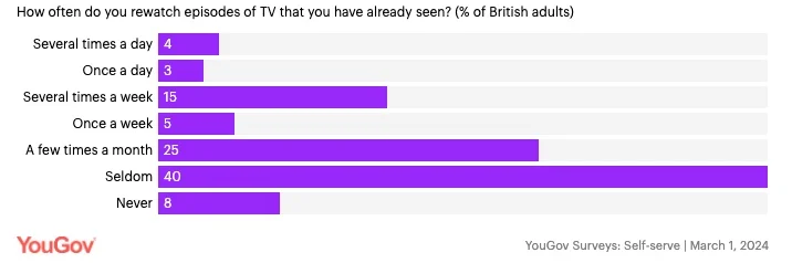 Over a quarter (27%) of Britons rewatch episodes of TV at least once a week. (YouGov)