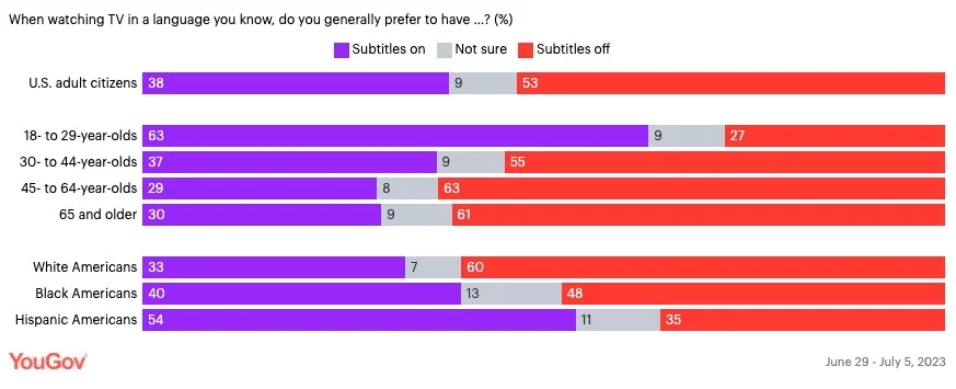 Most American adults under 30 prefer watching TV with subtitles even when they know the language. (YouGov)