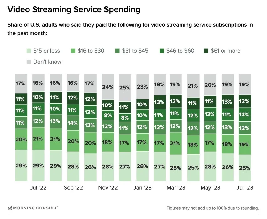 The share of US adults not paying for any video streaming service subscriptions was 22% in July, down 3 points from January. (Morning Consult)