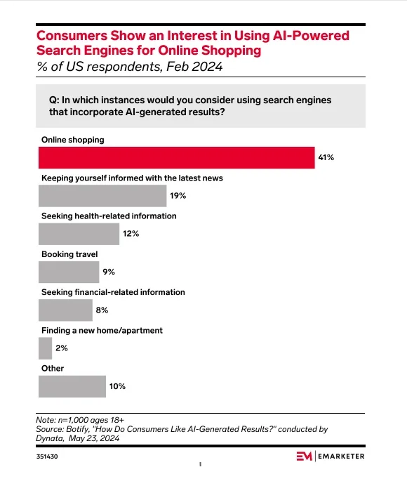 Generative AI search is becoming mainstream in 2025, and this shift is impacting organic traffic with an 8.9% decrease in clicks for URLs featured in Google's AI Overviews. (Emarketer)