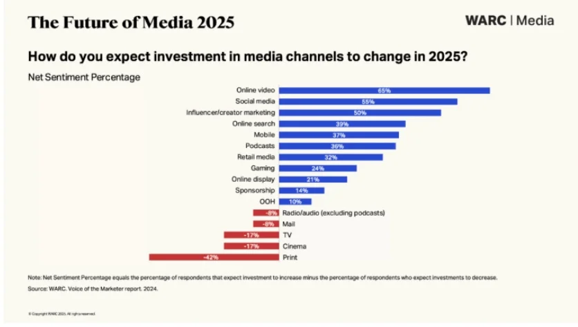 Global media in 2025 will be increasingly driven by algorithms, with ad spend reaching $1.08T (up 10.7%), as AI reshapes search behavior, retail media expands to $154.8B, and brands adapt to more diverse media channels. (Advanced Television)