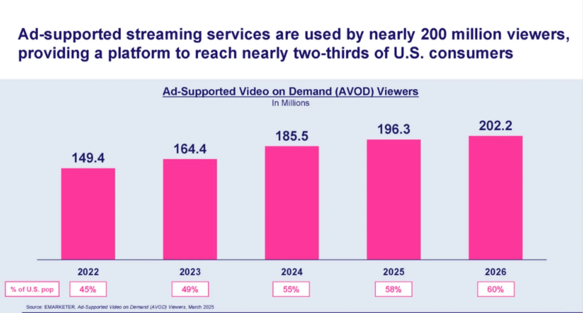 More than 200M people in the US are now tuning into ad-supported streaming video services, with 81% saying that watching ads is a fair trade for free content. (Media Play News)