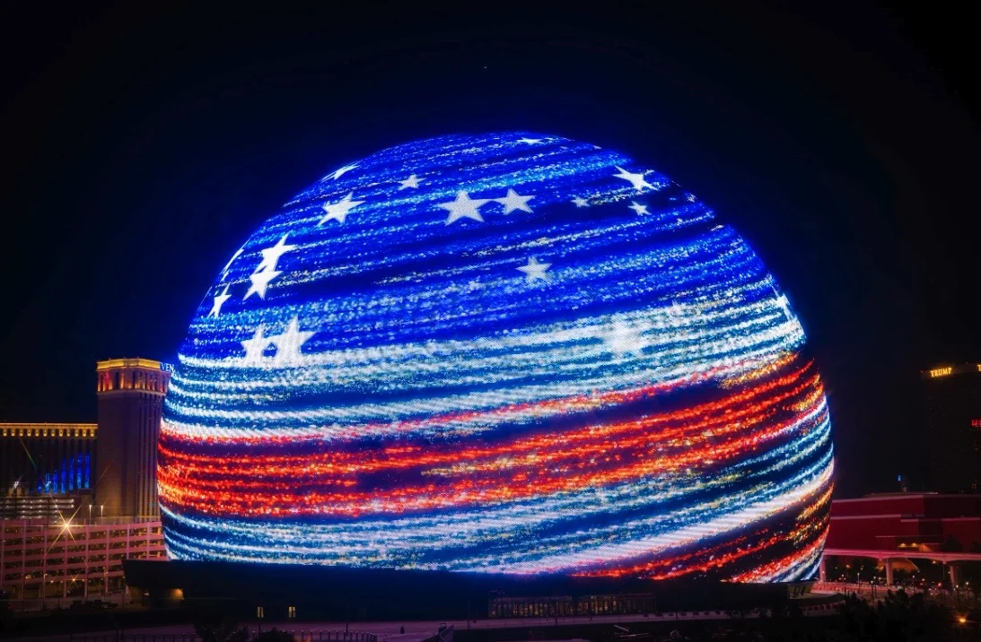 MSG Sphere in Las Vegas showed off its exterior display for 4th of July with a massive firework light show. (ABC)