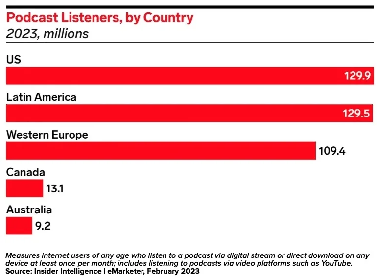 US podcasters are attracting more international listeners, with Latin America seeing the fastest listener growth at 7.7% YoY. (Digiday)
