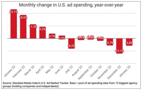 The US advertising marketplace fell for the seventh consecutive month in January, declining 5.8% from January 2022. (Media Post)