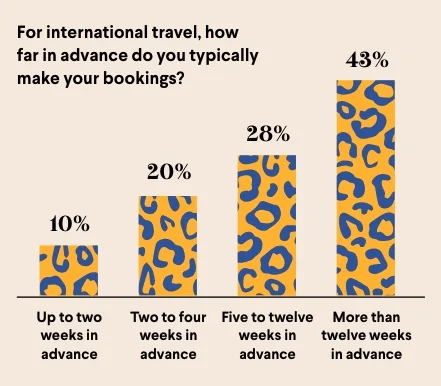 60% of 65- to 74-year-olds in the US and UK make international bookings more than twelve weeks in advance, while only 22% of 18- to 24-year-olds do the same. (Wunderkind)