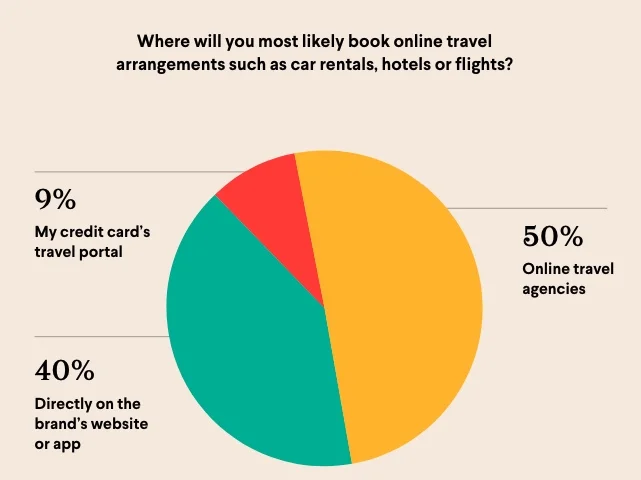 Consumers in the US and UK are most likely to book online travel through travel agencies (OTAs), though brand websites or apps command a strong portion of bookings, too. (Wunderkind)