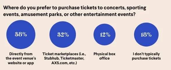 Over a third of consumers in the US and UK say they prefer to purchase tickets directly from an event venue’s website or app. (Wunderkind)