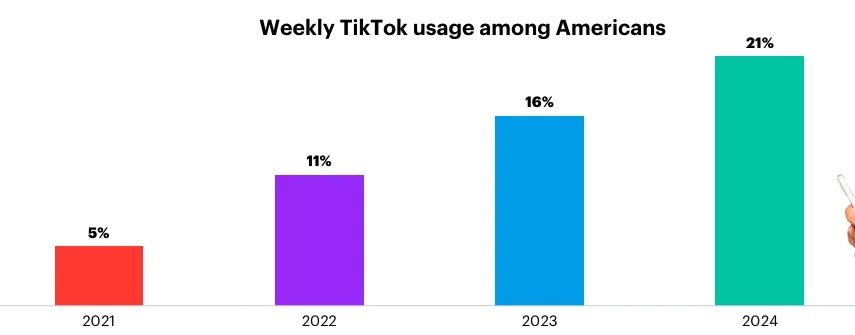 The number of Americans using TikTok weekly has quadrupled since 2021, with an influx of age 35+ users shifting the platform's demographics. (YouGov)