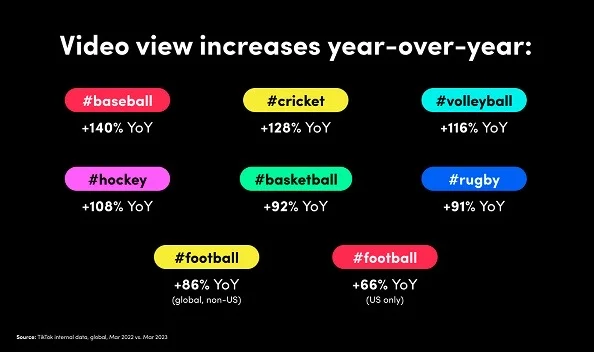 Engagement with sports content is rising fast on TikTok, with virtually all major sports seeing increases in activity over the past year. (Social Media Today)
