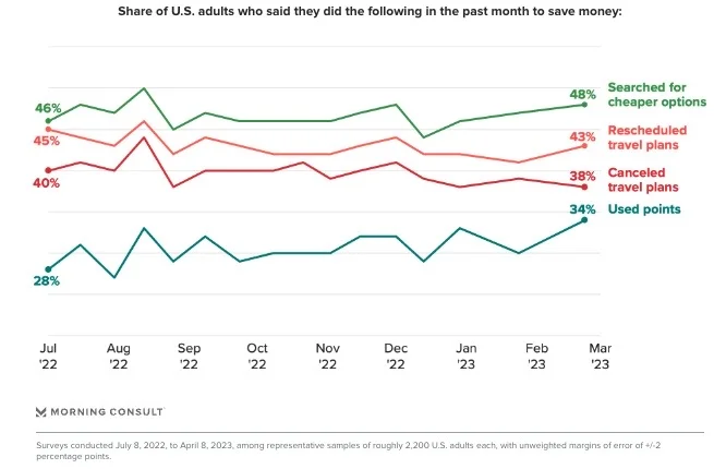 34% of US adults used points or rewards on travel purchases to save money, a 6 point increase since last summer. (Morning Consult)