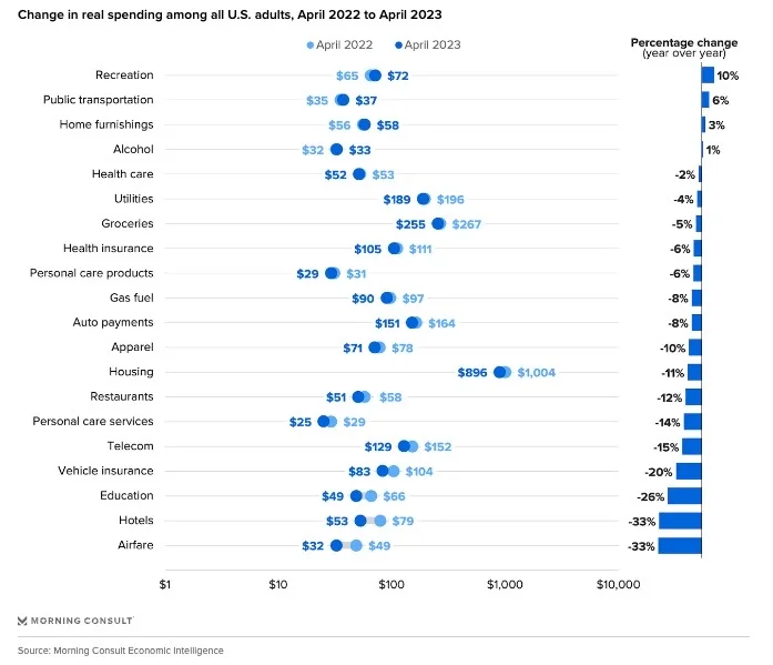 Americans are spending less on just about everything as persistent inflation hits their wallets. (Morning Consult)
