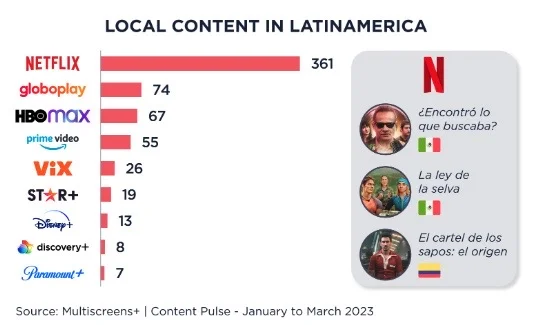Netflix leads local original content in LATAM with a total of 361 titles available in its catalog, followed by Globoplay with 74 and HBO Max with 67. (BB)