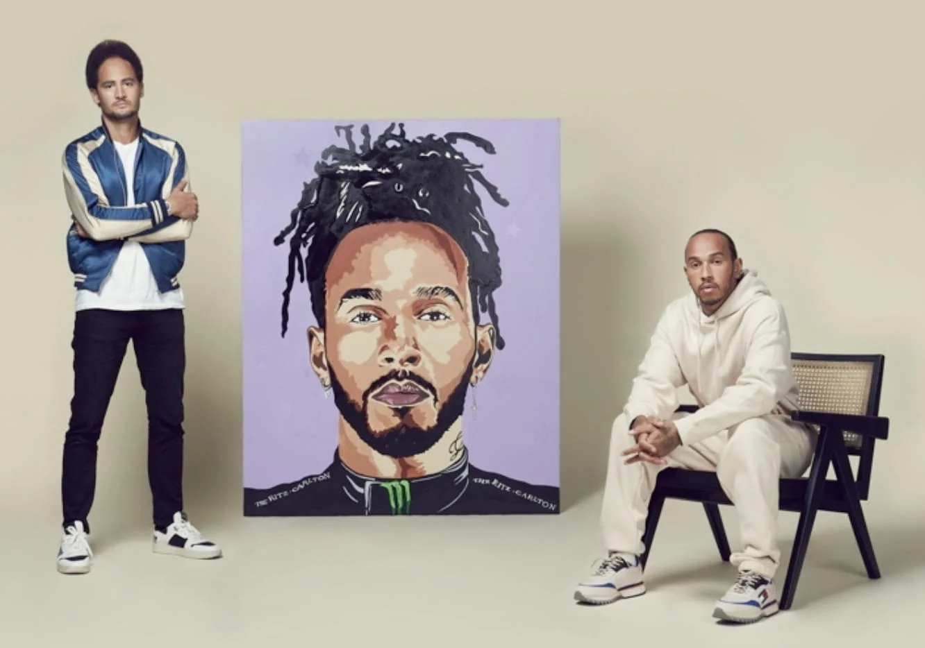 The Ritz-Carlton commissioned a travel poster series by Artist Louis-Nicolas Darbon and portraits signed by Sir Lewis Hamilton and George Russell. (Hotel News Resource)