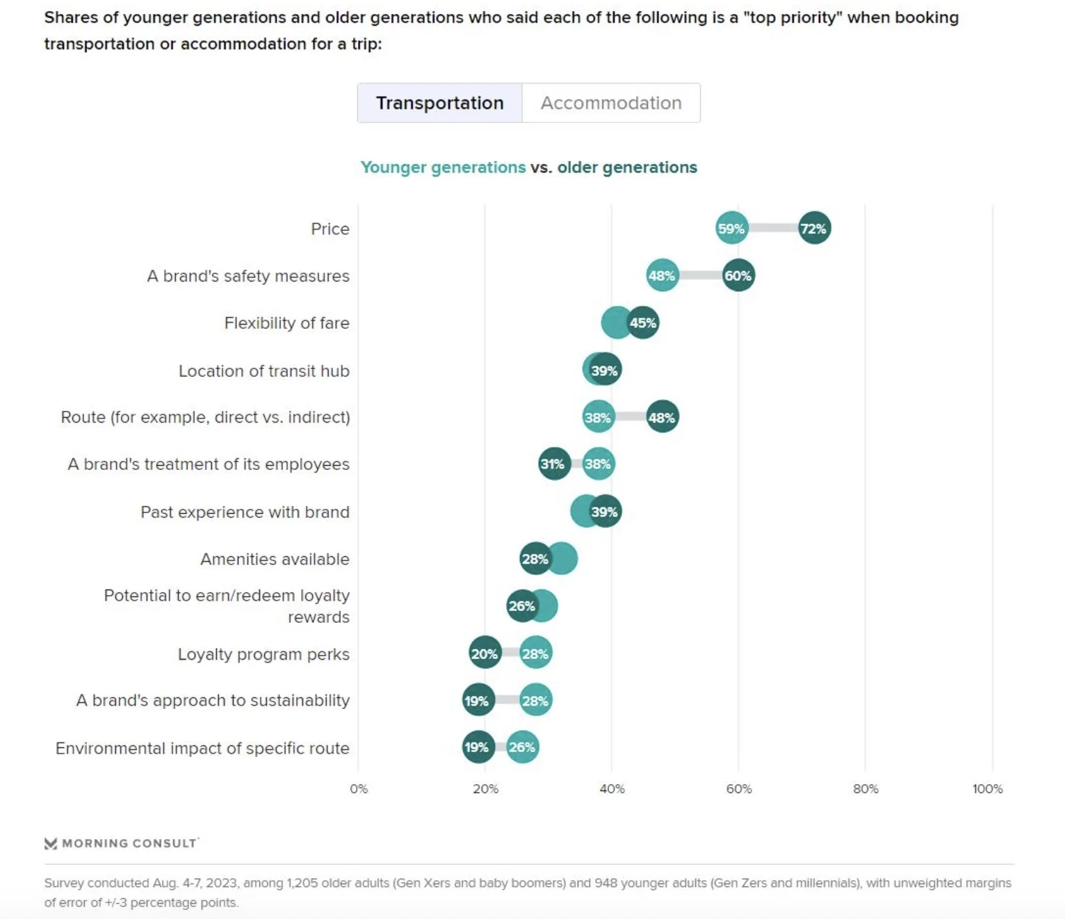 Younger travelers in the US are more motivated by values-oriented considerations than older generations are. (Morning Consult)