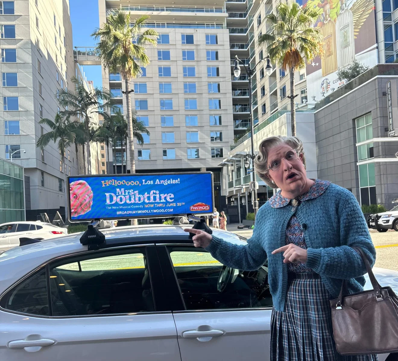 In Los Angeles and San Francisco, we took Mrs. Doubtfire around town to iconic locations and news stations to garner advance media coverage and support ticket sales for the show in each market.