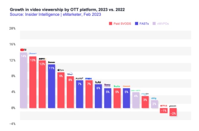 1 in 3 US users subscribe to free ad-supported TV streaming (FAST) services, and Amazon's Freevee is the fastest growing service, seeing 11% YoY growth. (Tech Crunch)