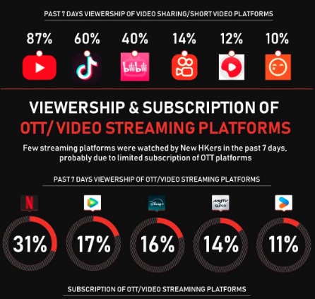 Netflix is the most popular streaming platform among new Hongkongers, though YouTube is most popular when you add in short-form video. (Marketing Interactive)