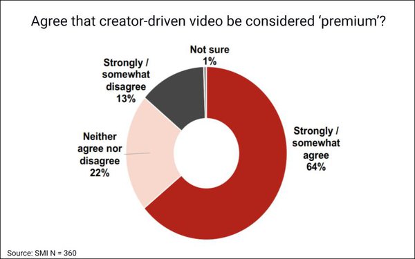 Two-thirds (64%) of TV/video buyers think that creator-driven video can be considered premium. (Media Post)