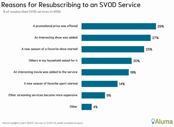 In the past year, 20% of US SVOD users resubscribed to a service they’d previously canceled, coming back most often thanks to promotional pricing. (NextTV)