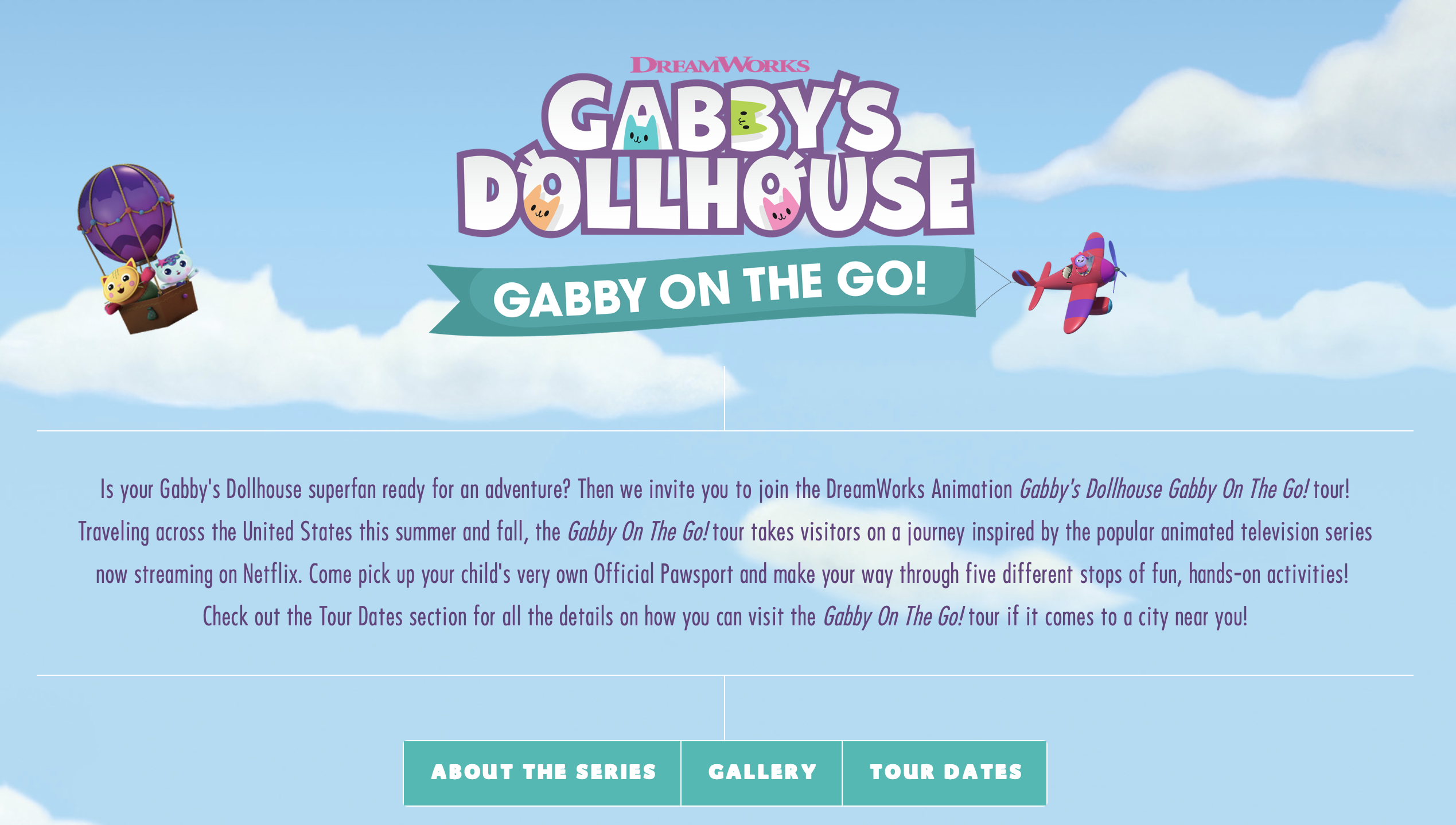 Our Owned Media team designed and developed a website for DreamWorks Animation's Gabby On The Go tour, based on "Gabby's Dollhouse" TV show. The website, featuring touring locations, ticketing links, an image gallery, a children's coloring book and an interactive map, is fully ADA compliant and device-responsive. The website, launched in June 2023, has since received close to a quarter million visits. Check it out here.