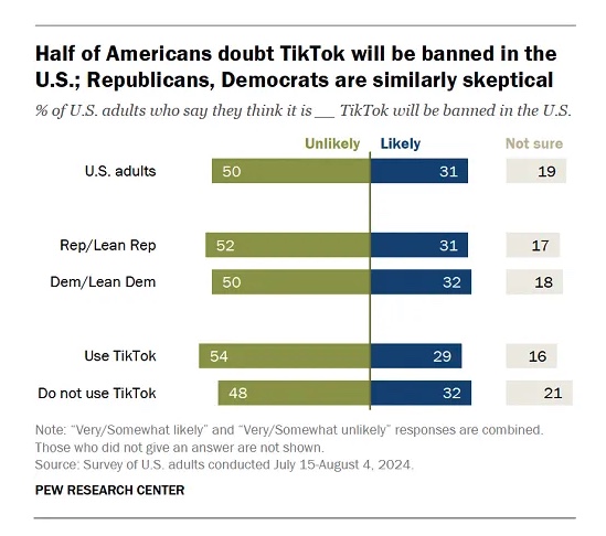 With the U.S. TikTok sell-off bill looming, half of Americans don’t actually believe TikTok will be banned in the country. (Social Media Today)