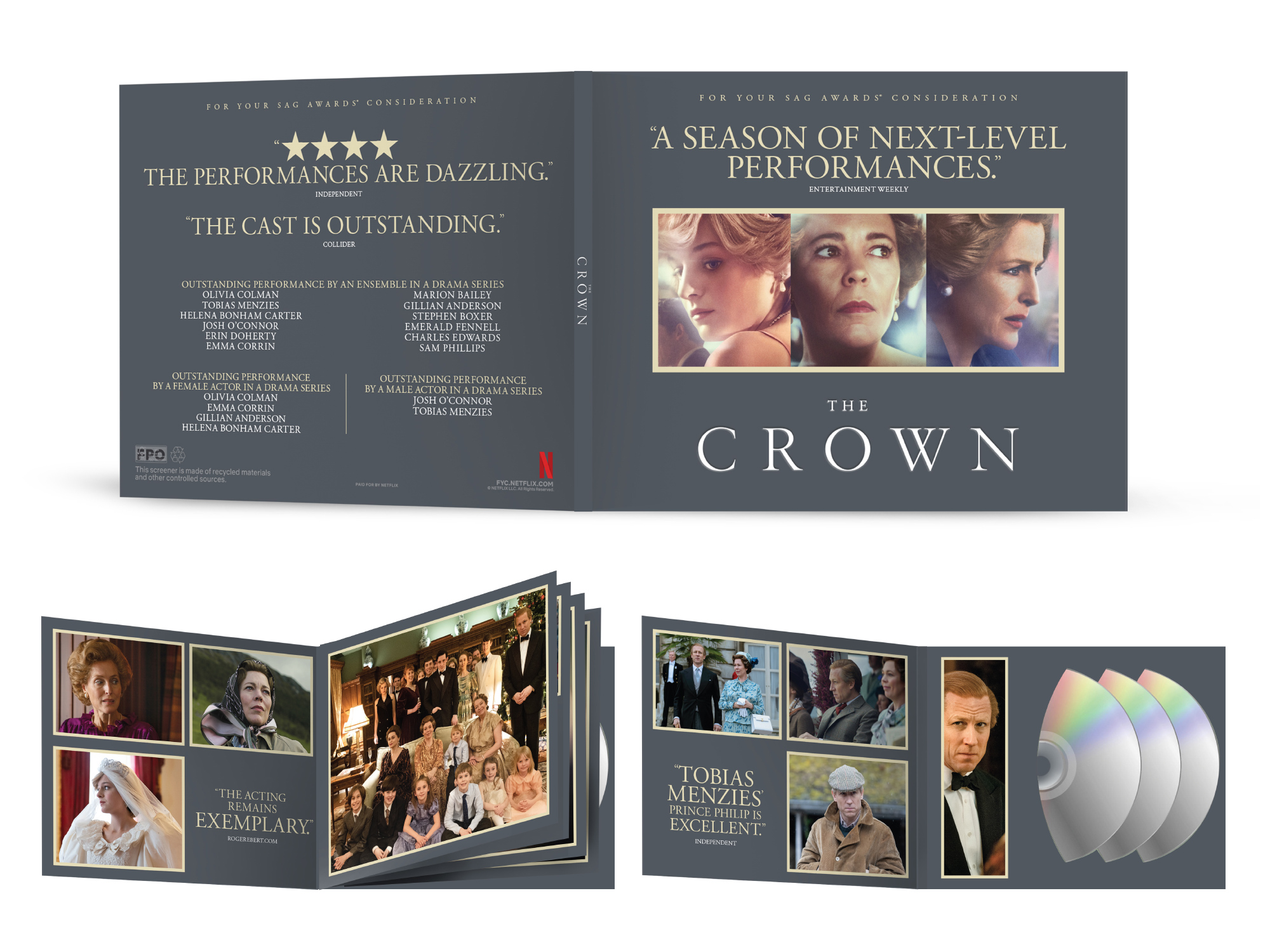 For Netflix's The Crown, we created a booklet that felt akin to a magazine, showcasing the craftsmanship and the performances in the show's latest season. The final booklet was an engrossing look at the series and resonated with voters, helping to earn the series several Emmy nominations. -