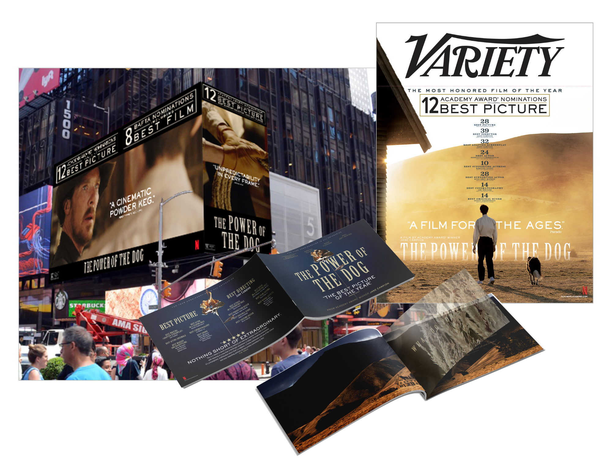 Although a theatrical release was not a major part of Netflix's strategy for their 2021 film The Power of the Dog, our awards creative team was able to keep the film in the public eye for several months following its November release date.